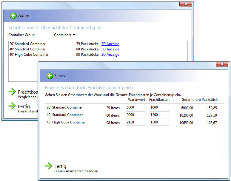 Geben Sie eine Packliste ein, und vergleichen Sie die Frachtkosten bei verschiedenen Containertypen. In wenigen Minuten haben Sie ihre Frachtkosten reduziert!